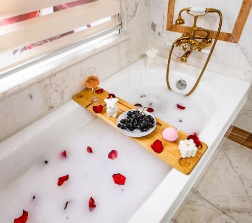 - املئ حوض الاستحمام بالماء الدافئ.